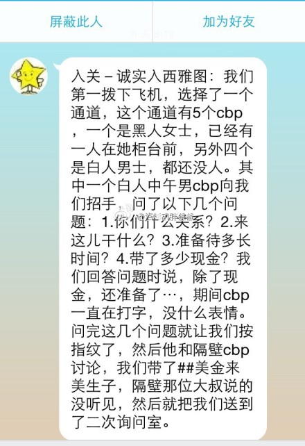 我们回答问题时说,除了现金我们还准备了医生预约单等一大堆大材料,期间CBP一直在打字,也没什么表情,问完这几个问题就让我们按指纹了,然后他和隔壁CBP讨论,我们带了多少美金来赴美生子,隔壁那位大叔说的什么没听见,然后就把我们送到小黑屋了。