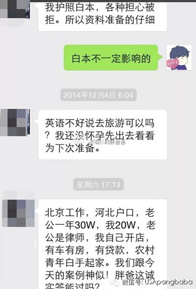 胖爸这里有很多白本办理美签顺利通过的客人,也遇见过曾在英国留学但办理美签仍然被拒的客人。下图这个案例中的孕妈是在办理美国签证前期才拿到的护照,面签时还被大使馆工作人员安排到华裔女签证官的窗口。不过好在这位孕妈准备充分,在签证官考察其工作、资产、流水等一系列状况时都能清晰作答。最后顺利拿到了签证:
