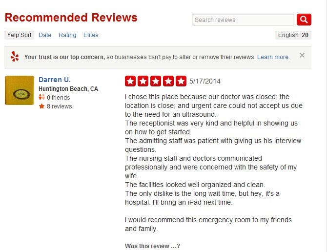 I chose this place because our doctor was closed; the location is close; and urgent care could not accept us due to the need for an ultrasound.